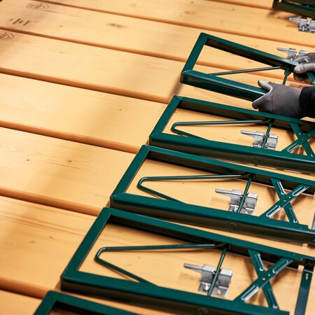 Le dossier garantit une assise confortable grâce à son inclinaison optimisée pour plus d’ergonomie. L’assise légèrement plus large y contribue également. Chaque banc avec dossier est en plus livré en standard avec une rallonge supplémentaire à l'arrière du piètement. Cela augmente la stabilité du banc et empêche qu’il ne se renverse.